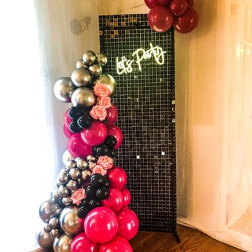 This includes a custom backdrop for any theme. Offer would include, balloon arch stand, balloons and balloon mosaic